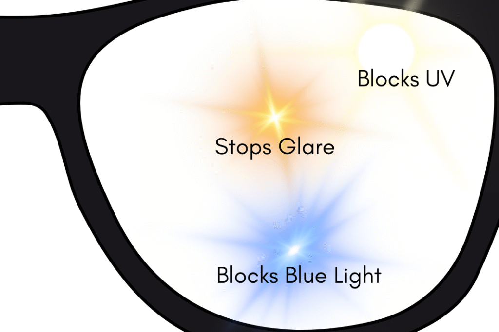 Blue Filter • UV Protection • Scratch-Resistant • Front & Back Anti-Glare Coating • Night-Time Drive-light Coating • Super-Hydrophobic (Water & Dirt Repellent)